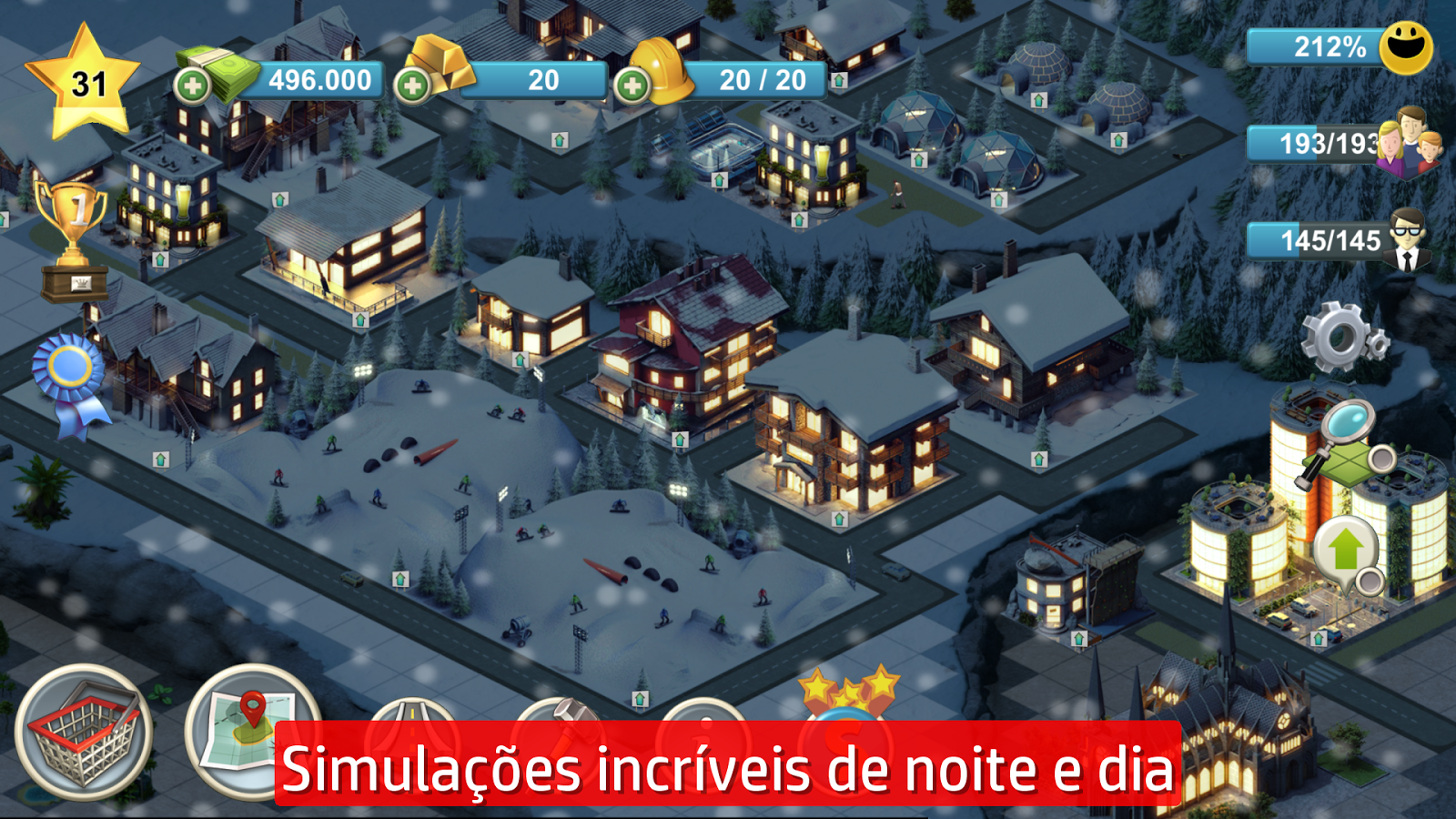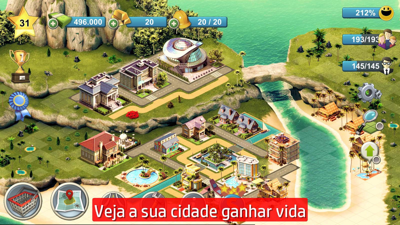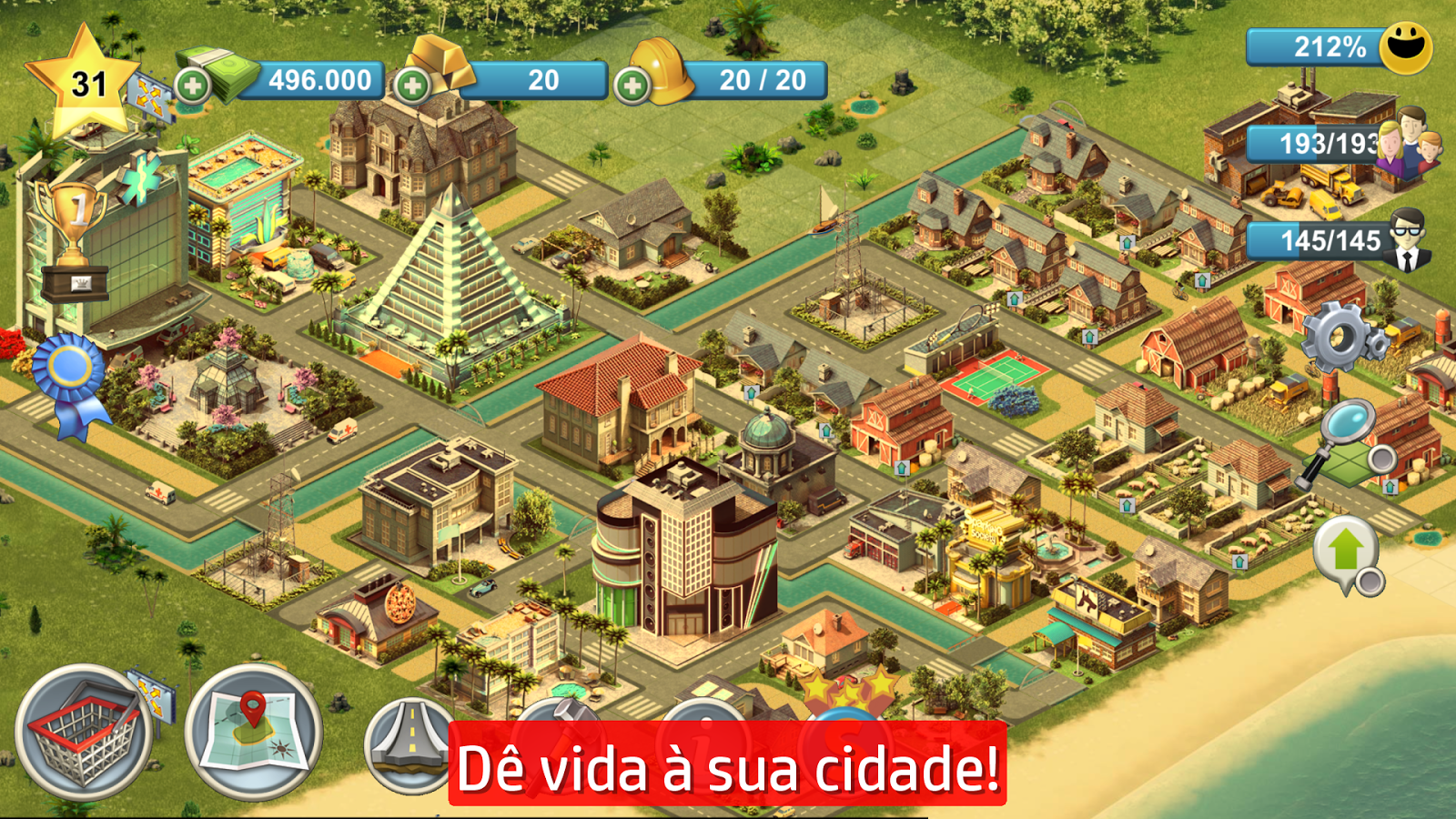 Participe do jogo de construção de cidades mais popular do mundo, com aspectos de simulação de cidade muito legais. Muitos desafios divertidos para concluir, por exemplo, encontrar a melhor forma de organizar a sua cidade com decorações que trazem melhorias, participar de eventos para reunir materiais suficientes para prédios especiais, gerenciar o transporte dos cidadãos, disponibilizar empregos suficientes e prédios comunitários para mantê-los felizes e ganhar mais dinheiro.
